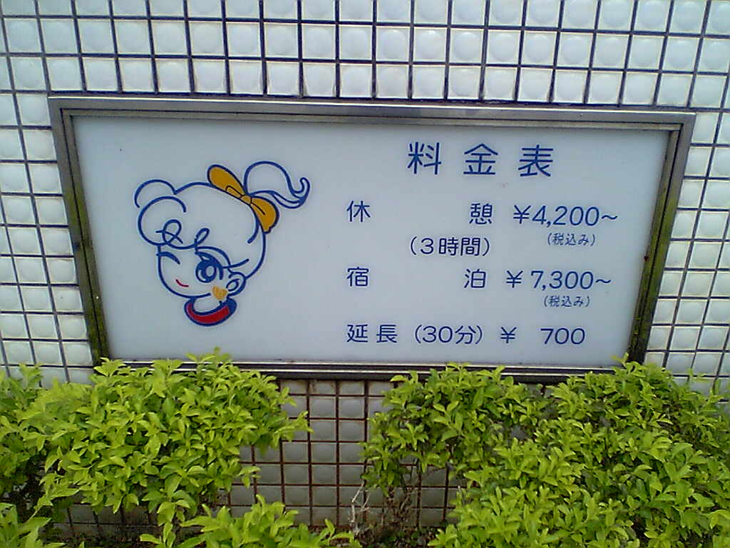 今週も始まりました街角探検隊、司会のバックギャモン五十嵐です! 今回ワタクシ、沖縄県民から絶大な支持を集める 人気ラブホテル「きまぐれポニーテール」に行って参りました! 可愛らしい看板が通りからイヤでも目に付く位置にあります。 (写真は隣接するアパートの屋上から撮影) 見てください!この圧倒的な存在感!! なんと露天風呂付きの部屋があるそうです! 料金設定もシンプルで良心的! ビンボーな学生カップルにはありがたいですね! 今回ワタクシ、早朝(朝8時)&一人での取材だったので さすがに中までは入れなかったんですが、 外から見ただけでも沖縄県民の絶大な支持を集める理由がわかった気がします!! みなさんもご家族で、お友達同士で、一度足を運んでみてはいかがですか? それでは!! Auf wiedersehen!! ……………… あ、そうそう、近くに二輪車運転練習場があったので ついでに講習受けて原付の免許を取って来ました。 ~おわり~ |